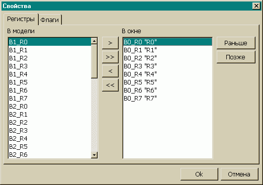 Окно регистров