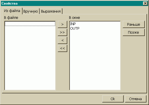 Данное окно предназначено для отображения переменных. Переменные могут быть заданы двумя способами: с помощью информации полученной из файла с отладочной информацией и “вручную”. Для указания какие переменные используемые в программе отображать в данном окне, надо начать выполнение, открыть окно с переменными, из списка выбрать необходимые, нажать кнопку “>” и затем кнопку “Ok”. Для выбора переменных “вручную” надо нажать правую кнопку “мыши” на окне, выбрать пункт “всплывающего” меню “Свойства”, в появившемся окне перейти на вкладку “Вручную”, нажать кнопку “Добавить”, ввести имя переменной и выбрать ее местоположение. Переменные используемые в программе и введенные вручную, в окне разделяются вертикальной чертой.