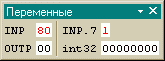 Для изменения переменной надо подвести указатель “мыши” к ячейке и нажать левую кнопку. Если переменная однобитная, то ее значение изменится на противоположное. Иначе появится курсор и можно будет ввести новое значение с помощью клавиатуры. После ввода значения переменной надо нажать “Enter”, если необходимо отказаться от изменений, то следует нажать “Esc”. При редактировании шестнадцатеричных данных производится контроль ввода, если вводится недопустимый символ, то подается звуковой сигнал.